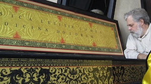 These experiments that result in a decade-long journey and incorporate techniques that include spending over two hundred days creating an exact replica of Vermeer’s studio portrayed in the artist’s painting, “The Music Lesson” – down to ever last detail including the elaborate designs of an ornate table clothe – and then attempting to reproduce the painting in its entirety through the use of a small mirror and a sort of paint-by-numbers method that allows him to copy the reflection of the scene onto the canvas in order to assimilate the painting process he believes Vermeer might have used.