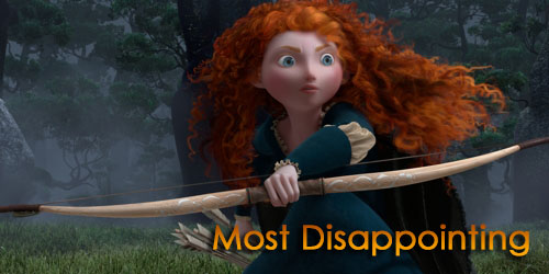 Pixar took a lot of flak for Cars, John Lasseter’s nostalgically themed throwback to the days of family road tripping. While well-intentioned, it just wasn’t up to their standards and neither was its misdirected spy/surf sequel which starred no one’s favorite red neck tow truck. But the first boilerplate story for the animation powerhouse, a princess yarn, similarly didn’t do anything to stir audiences or critics. Not that Pixar is on the chopping block but this third strike for the house that Lasseter built shows that no studio is infallible. Sure I liked it in my review, or should I say wanted to like it, but looking back on it again this is quite far from what Pixar is capable of.