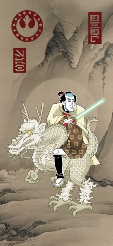 NY based artist Steve Bailik has recognized that Lucas borrowed from Kurosawa’s The Hidden Fortress and as such decided he would return the favor. The result? This and other sweet looking Star Wars based Samurai paintings. Click here to see the rest of his series.