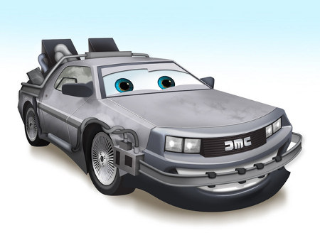 For those of you who get their kicks on Route 66 from seeing cars with giant eyeballs, have a gander at these Pixar inspired interpretations (read: no actual Pixar affiliation) of famous film automobiles. Hey, I more or less like Cars (well, mainly just  Cars 2) and got a kick out of these, maybe you will too…Enjoy!